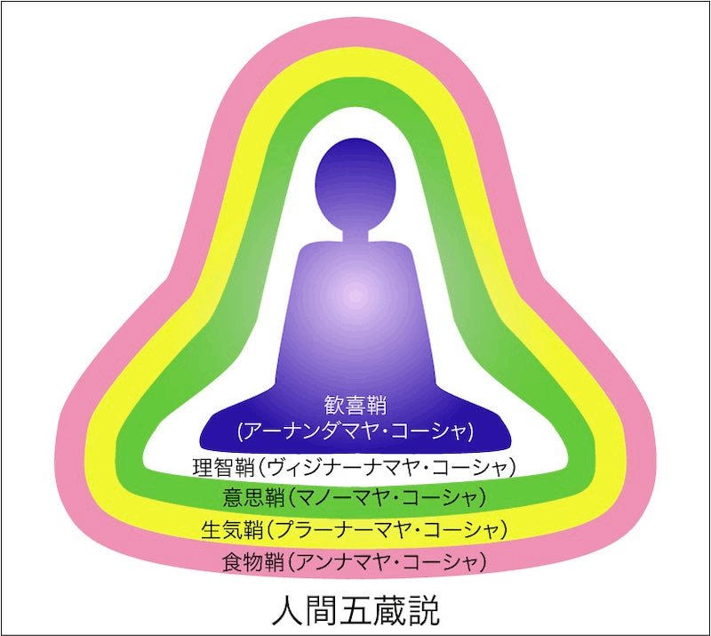 ヨーガの聖典(タイティリーヤ・ウパニシャッド)では、人間を五つの鞘/カバーからなると捉えています。